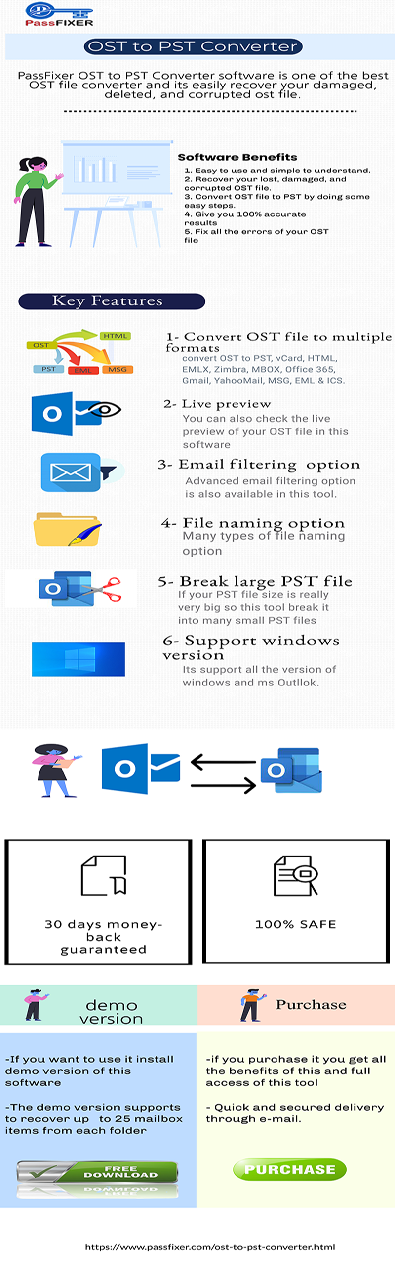 If you want to recover your damaged OST file with all data so go with PassFixer OST to PST Recovery tool. this tool recovers your damaged OST file safely and it also converts your OST file to multiple formats like PST, MBOX, EML, EMLX, vCard, MSG, HTML, ICS, Yahoo, Gmail, and Office 365. Many types of helpful features are also available in this tool like the live preview feature and bulk conversion feature and many more. Check the demo version of this tool from the official website of PassFixer.